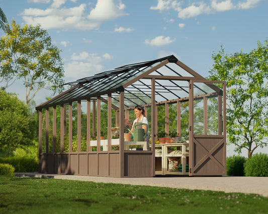 Browse our versatile 8 ft. wide greenhouses at Canada Greenhouse Kits, ideal for both novice and seasoned gardeners. These spacious models come in various designs like Essence, Balance, and Bella, crafted to enhance any Canadian garden by extending growing seasons and protecting plants from harsh weather.