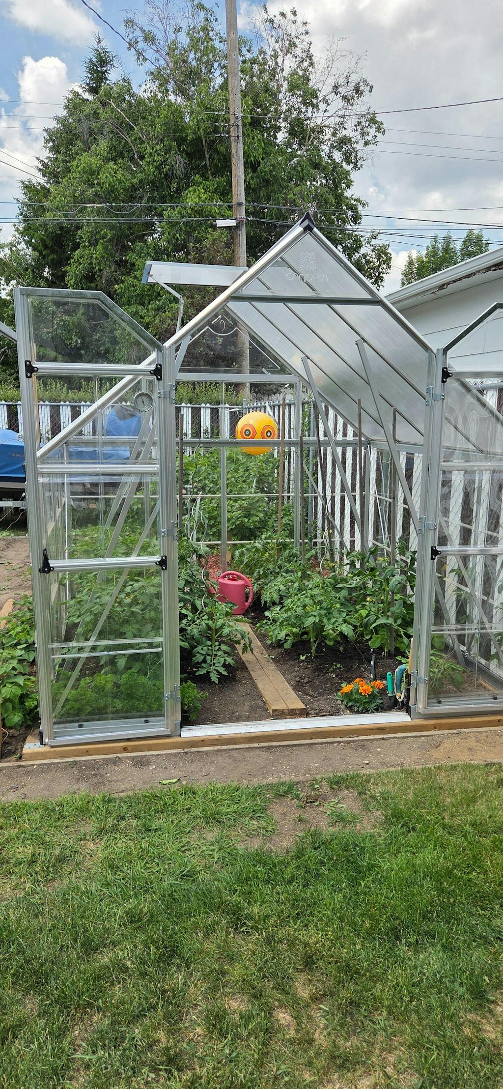 The Palram Balance® 8x8 Greenhouse is a spacious, aesthetic and durable greenhouse that gives plants optimal nurturing conditions. It features two types of virtually unbreakable Polycarbonate panels, creating an ideal combination of sunlight transition, heat insulation, and safety for all your gardening needs. The Balance 8x8 has a large work-space and wide double door that provides plenty of growing room for even the most enthusiastic gardener, with enough room to spare for seeding and storing tools and supplies. Strong support beams and a rust-resistant perimeter steel base are also included to provide protection against strong winds and heavy snow load as well as for adding structural support, stability, and alignment. The combination of the safe polycarbonate, the sturdy rust free aluminum frame, and the XL work-space provides you with a functional and durable greenhouse. Enjoy gardening for many years with the Palram Balance Greenhouse; cultivate your own organic fruits, veggies and herbs in a well-balanced environment. A Palram-Canopia Anchoring Kit can be added to the greenhouse to be used in addition to an appropriate mounting base.